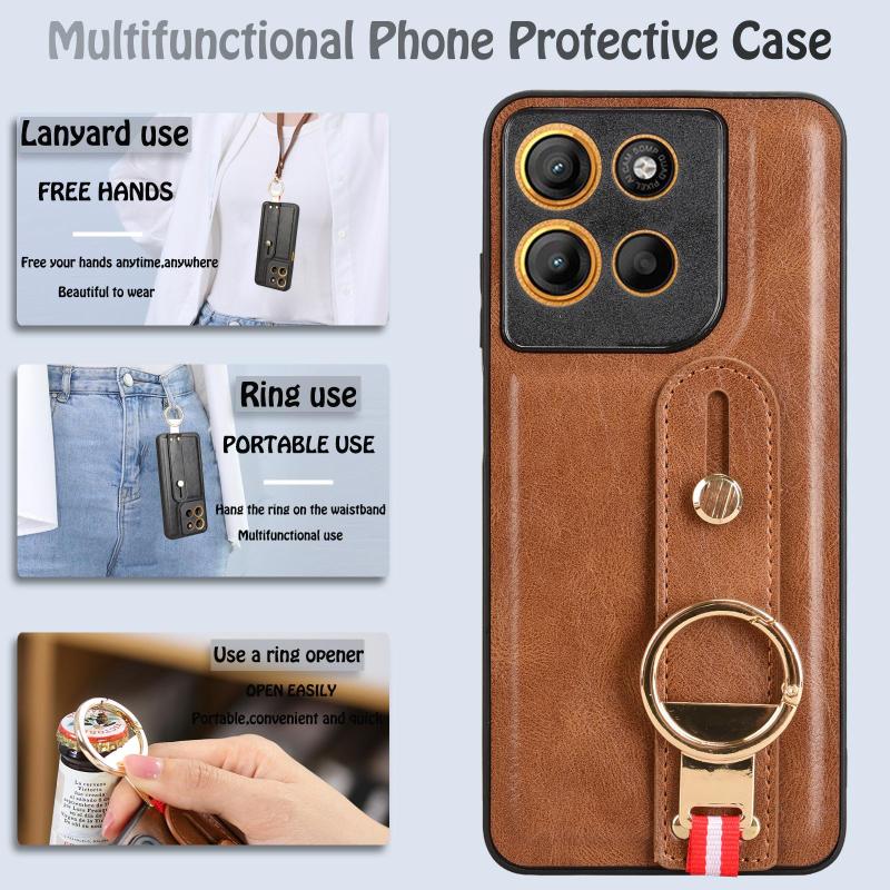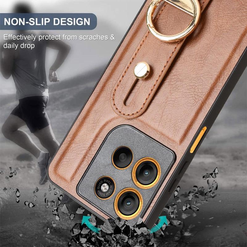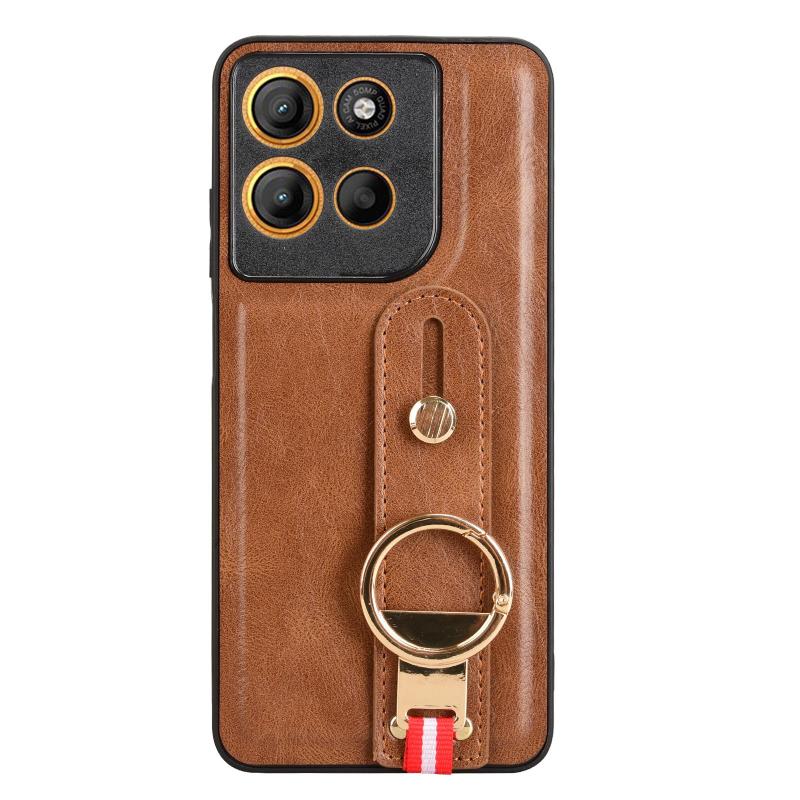 For Motorola Moto G15 / G15 Power 4G Wristband Leather Back Phone Case(Brown)