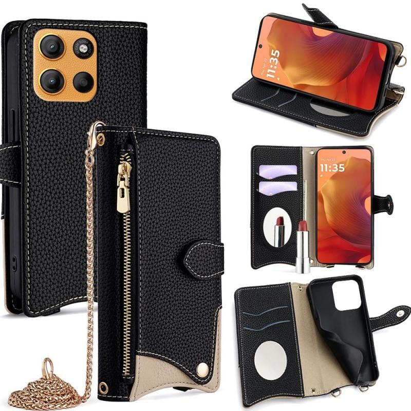 6. Σχέδιο με Μεταλλική Αλυσίδα Χιαστί: Εξοπλισμένη με ένα μεταλλικό κορδόνι αλυσίδας που μπορεί να φορεθεί χιαστί, το οποίο είναι βολικό για τα ταξίδια σας.
