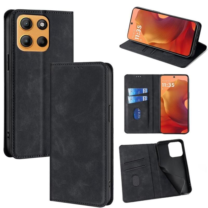 Θήκη κινητού τηλεφώνου από δέρμα με μαγνητική αίσθηση για Motorola Moto G15 / G15 Power (Σκούρο Καφέ)