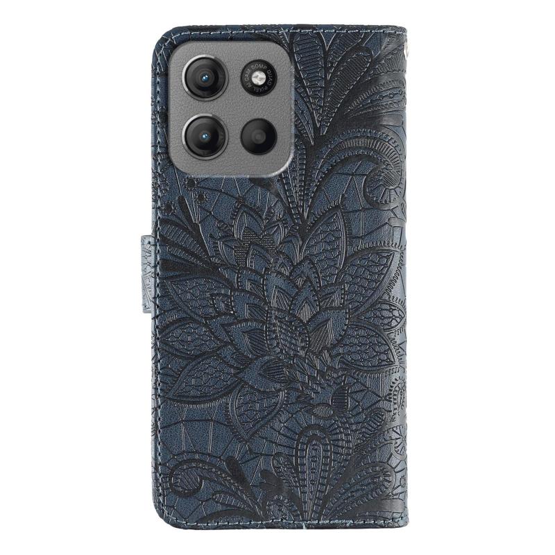 For Motorola Moto G15 Lace Flower Embossing Flip Leather Phone Case(Dark Blue)