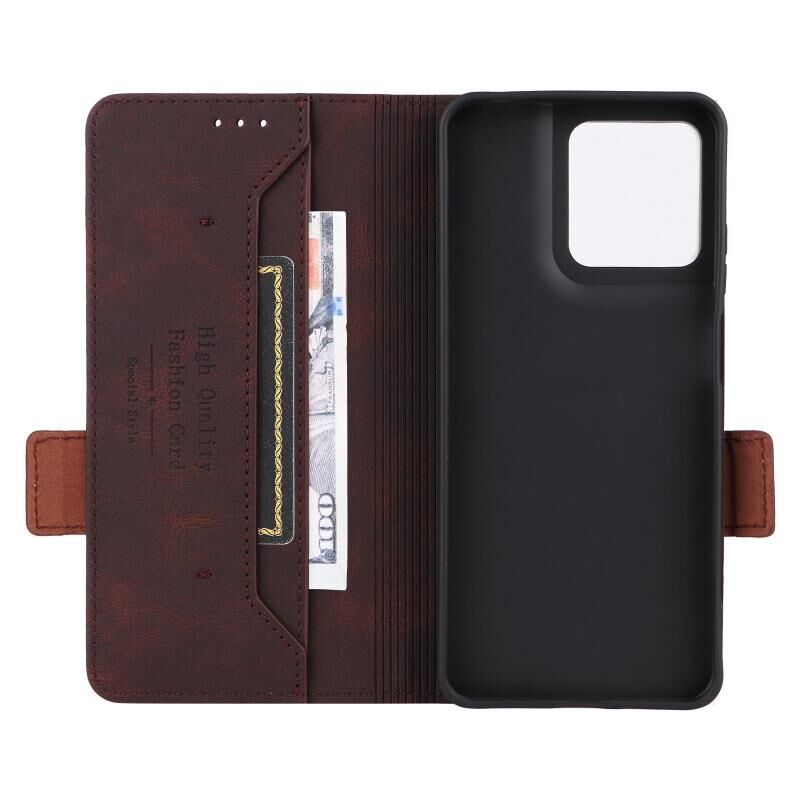Για Motorola Moto G15 Μαγνητικό κούμπωμα Δερμάτινη θήκη τηλεφώνου (καφέ)