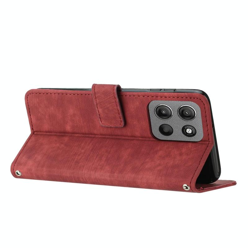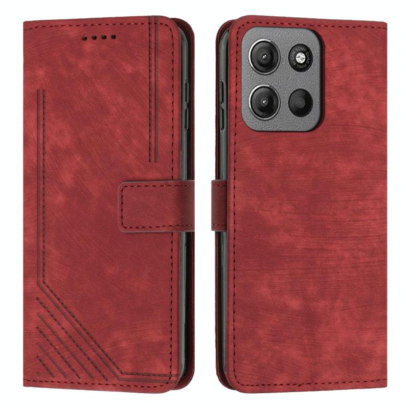 For Motorola Moto G15 Skin Feel Stripe Pattern Leather Phone Case with Lanyard(Red)