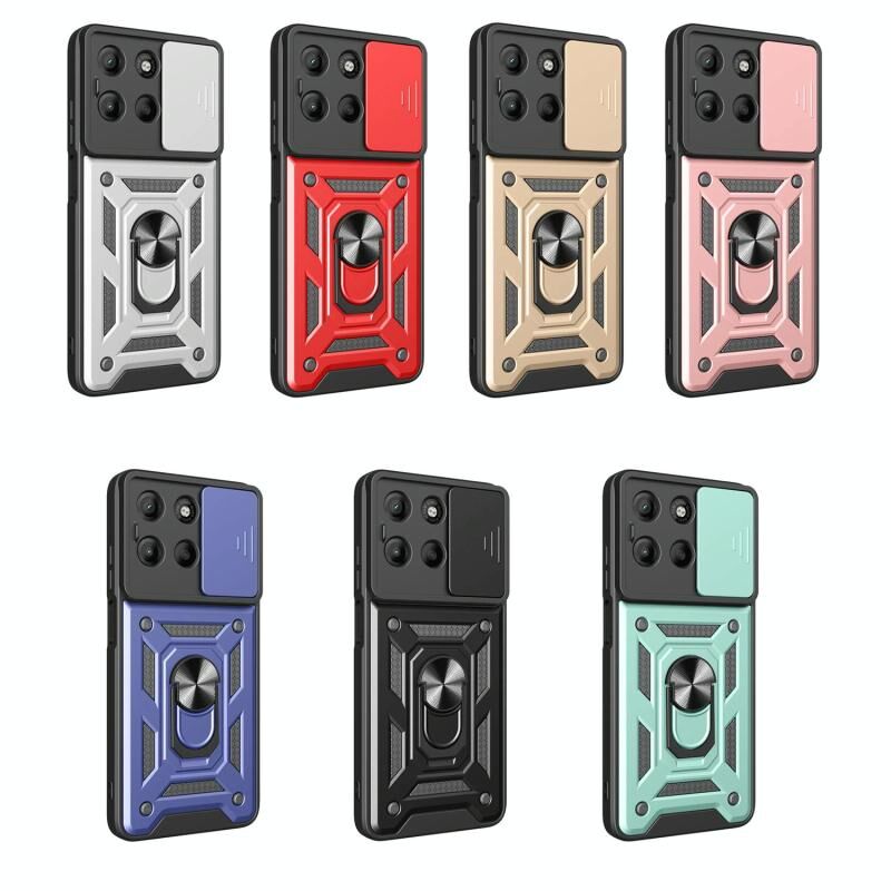 Για Motorola Moto G15 συρόμενη κάμερα κάλυμμα Σχεδιασμός TPU Υβριδική θήκη τηλεφώνου PC (Μαύρο)