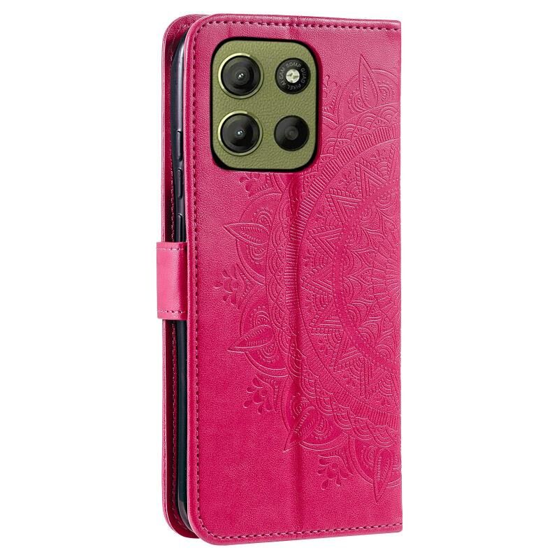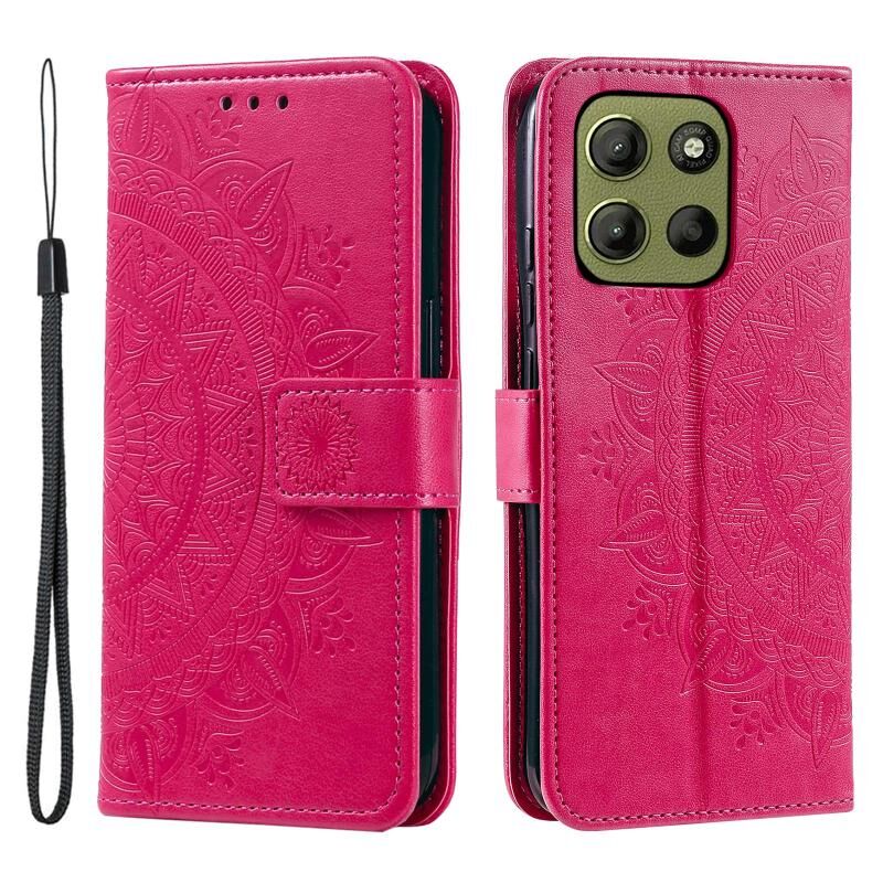 Για Motorola Moto G15 Totem λουλούδι ανάγλυφο δερμάτινη θήκη τηλεφώνου με κορδόνι (κόκκινο)