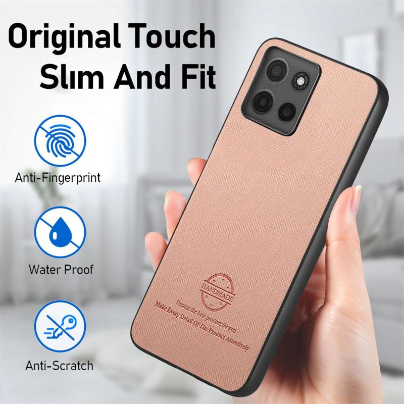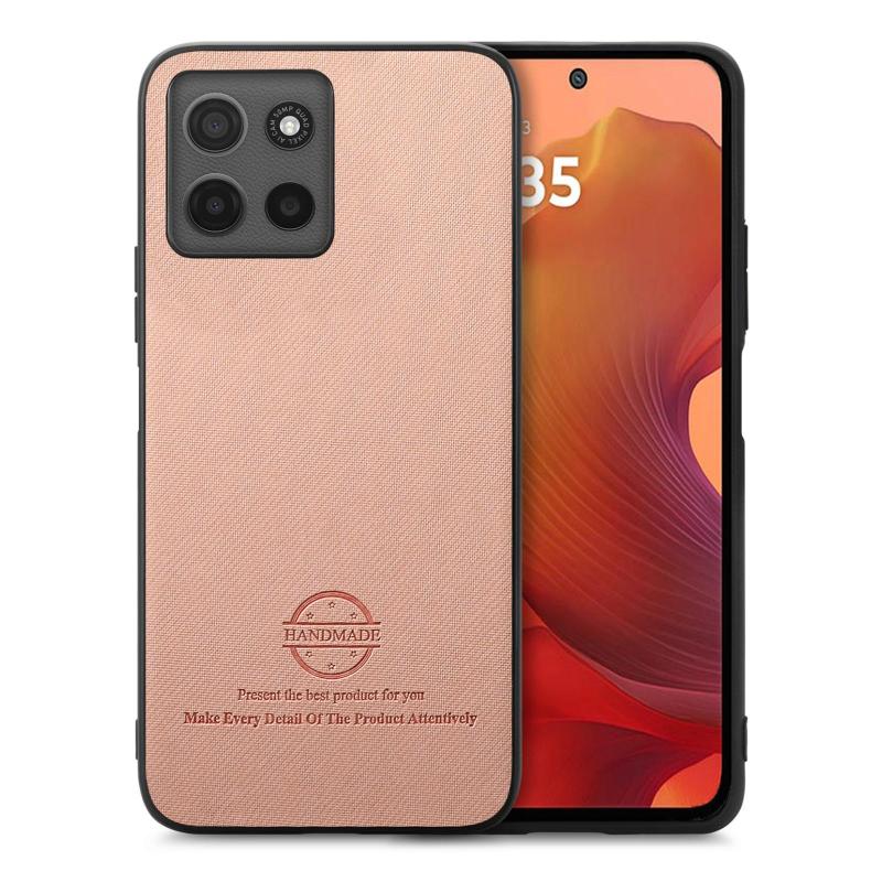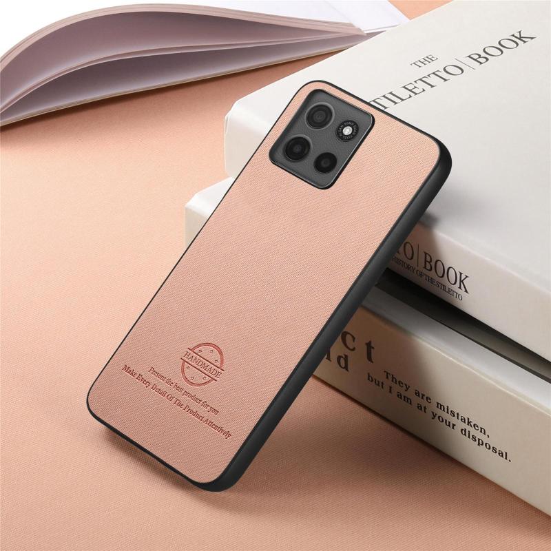 For Motorola Moto G15 Twill Fabric Leather Skin Back Phone Case(Pink)