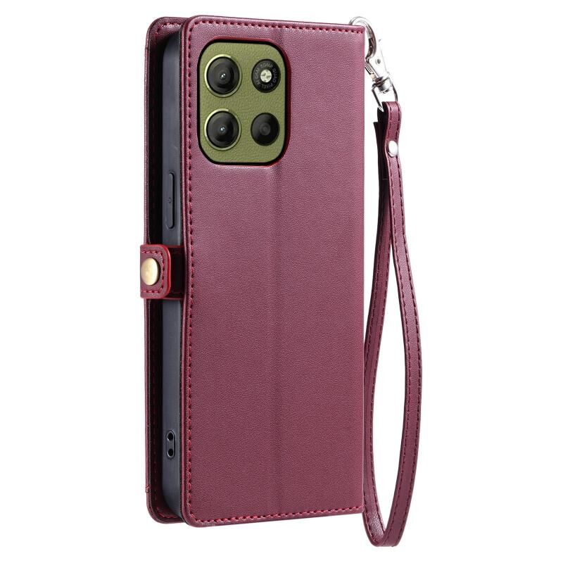 Για Motorola Moto G15 Πορτοφόλι Multi-card Slot Δερμάτινη θήκη τηλεφώνου με κορδόνι (κόκκινο κρασί)