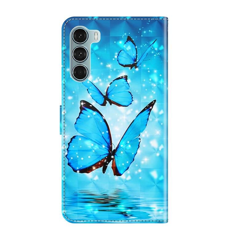 Θήκη τηλεφώνου από δέρμα με σχέδιο 3D ζωγραφικής για Motorola Moto G200 5G / Edge S30 (Τρεις Πεταλούδες)