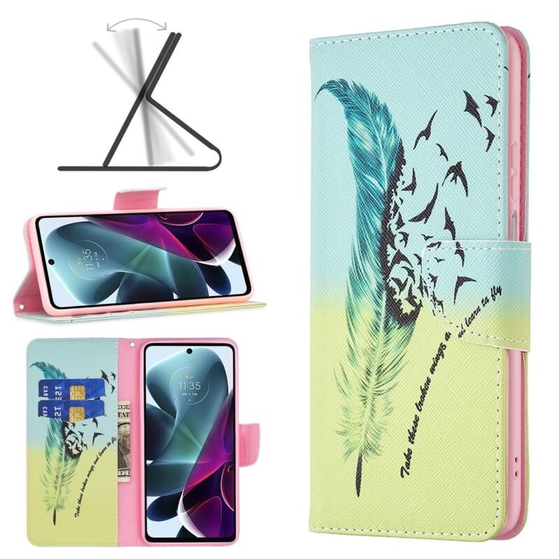 Θήκη τηλεφώνου από δέρμα με έγχρωμο σχέδιο (Φτερό) για Motorola Moto G200 5G / Edge S30 5G