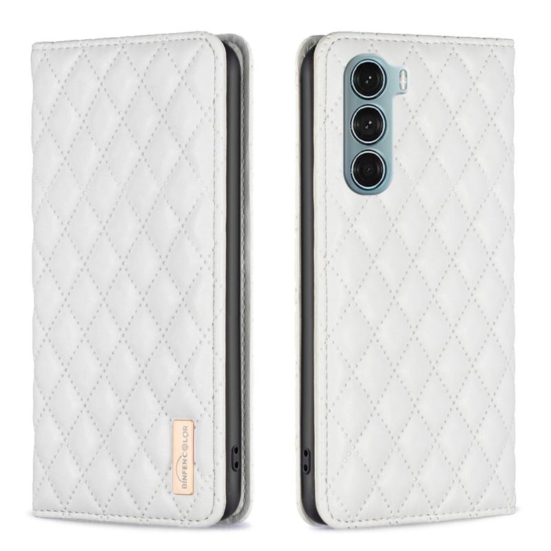 Θήκη τηλεφώνου τύπου flip από δέρμα με μαγνητικό πλέγμα διαμαντιών για Motorola Moto G200 5G / Edge S30 5G (Μαύρο)