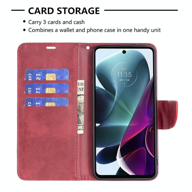 Θήκη τηλεφώνου από γνήσιο δέρμα με καθαρό χρώμα και υφή δέρματος αρνιού για Motorola Moto G200 5G / Edge S30 5G (Κόκκινο)