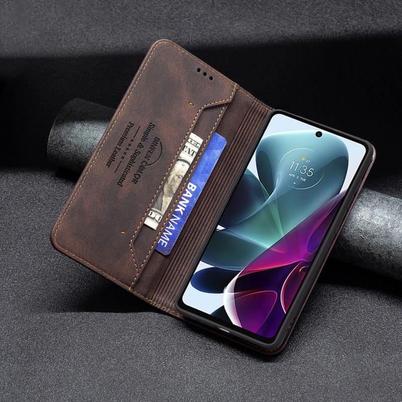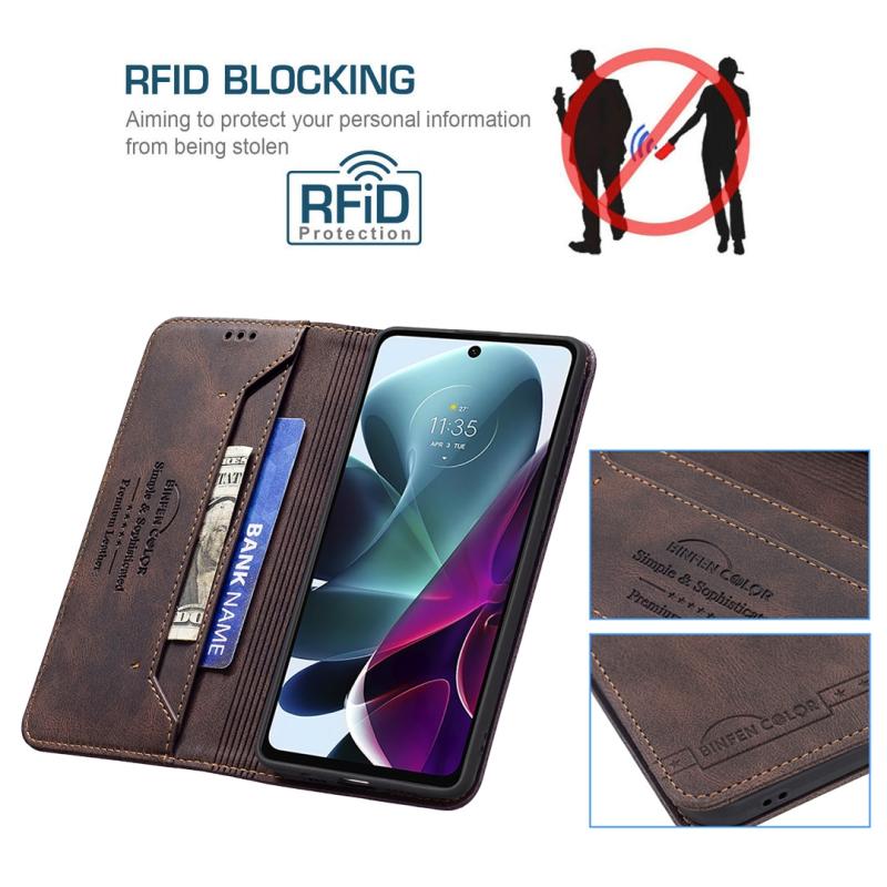 For Motorola Moto G200 5G / Edge S30 5G Magnetic RFID Blocking Anti-Theft Leather Phone Case(Brown)