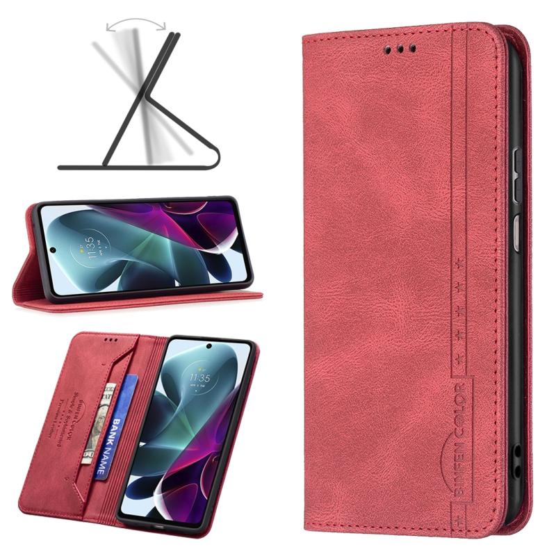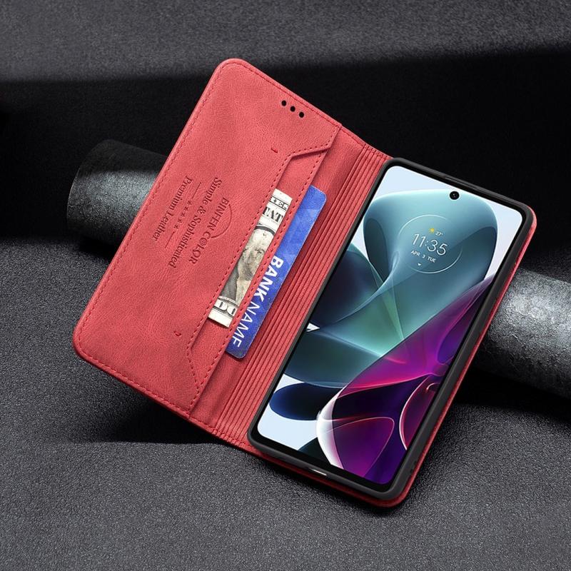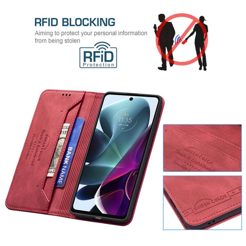 Θήκη τηλεφώνου δερμάτινη με μαγνητικό κλείσιμο, μπλοκάρισμα RFID και προστασία από κλοπή για Motorola Moto G200 5G / Edge S30 5G (Κόκκινο)