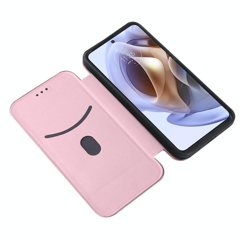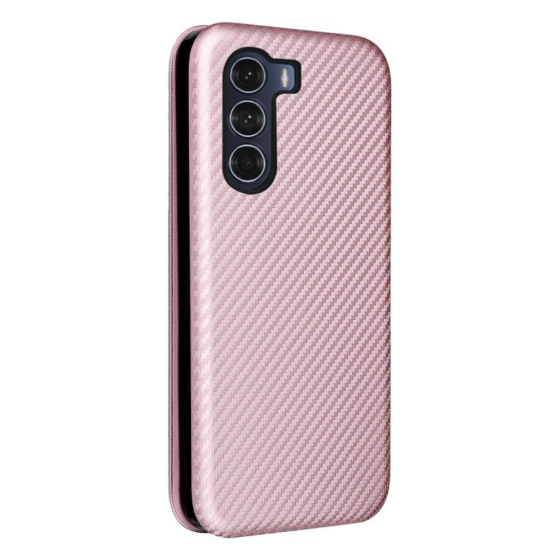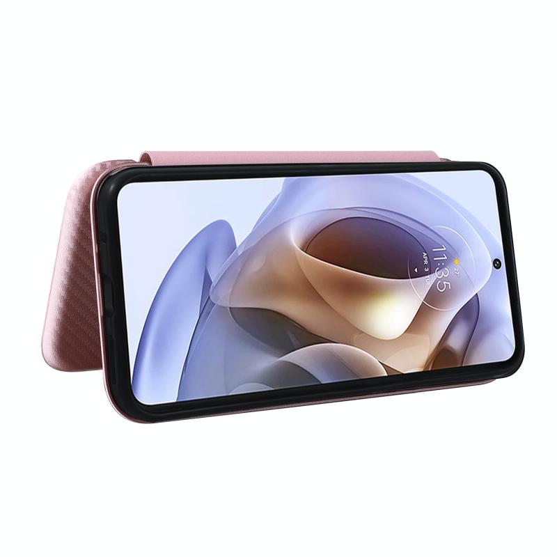 Θήκη τηλεφώνου δερμάτινη οριζόντιας αναδίπλωσης με υφή ανθρακονημάτων για Motorola Moto G200 5G / Edge S30 (Καφέ)
