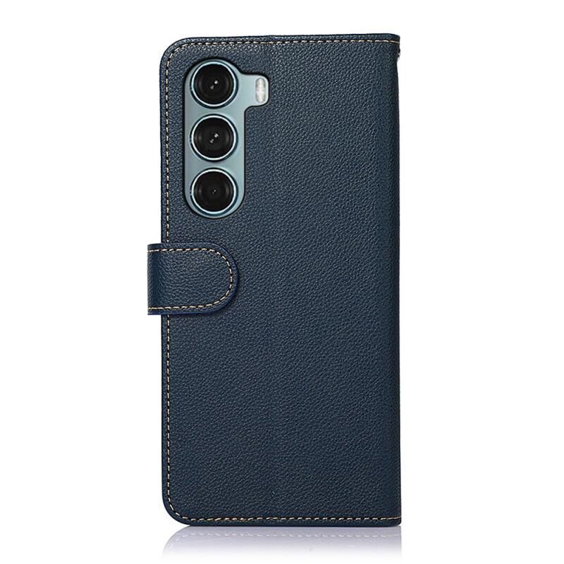 Θήκη κινητού τηλεφώνου Motorola Moto G200 5G KHAZNEH με δερμάτινη υφή λυτσί (Μπλε)