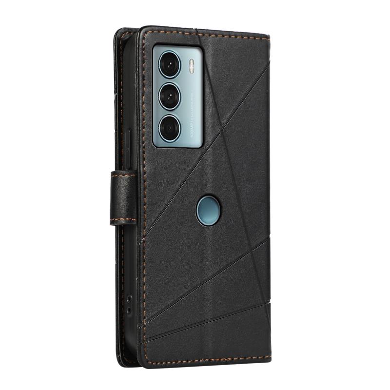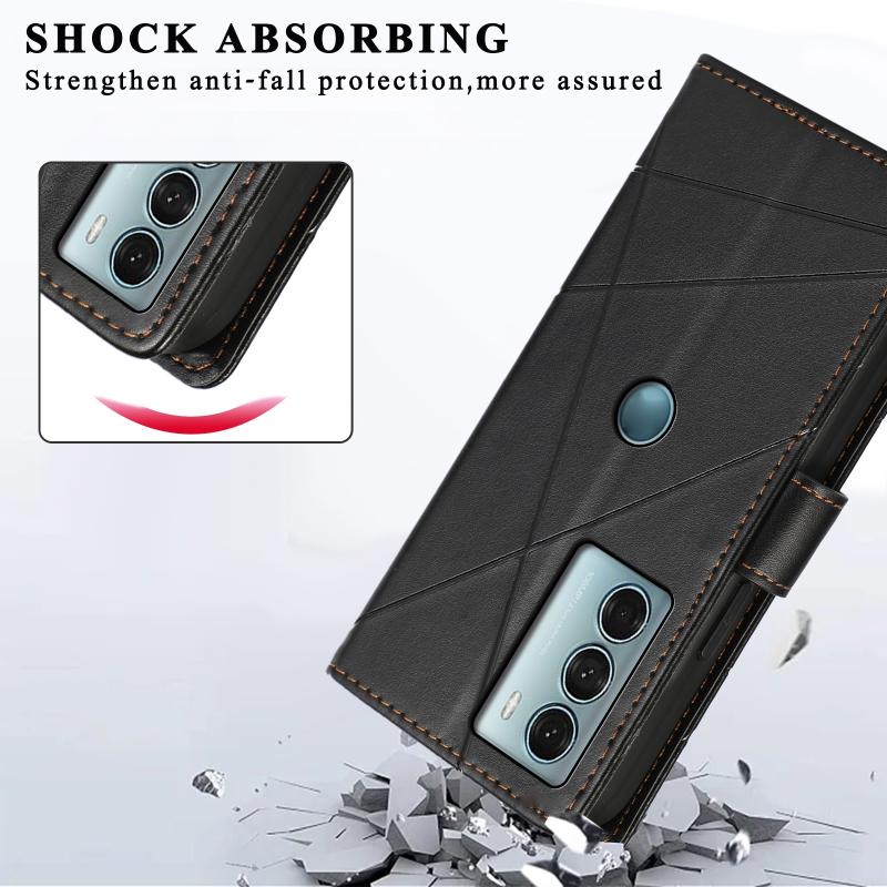 For Motorola Moto G200 5G PU Genuine Leather Texture Embossed Line Phone Case(Black)