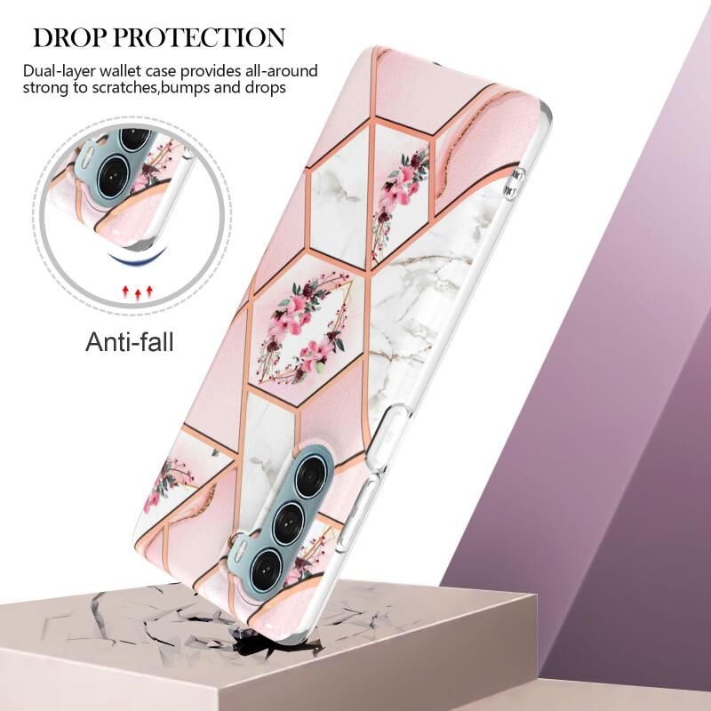 Θήκη τηλεφώνου TPU με σχέδιο μαρμάρου και λουλουδιών για Motorola Moto G200 5G (Ροζ Λουλούδι)