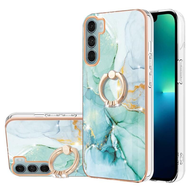 Θήκη κινητού τηλεφώνου για Motorola Moto G200 με επιμετάλλωση, σχέδιο μαρμάρου IMD, αντικραδασμική από TPU με δακτύλιο στήριξης (Μωβ 001)