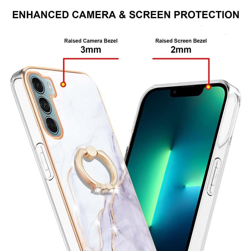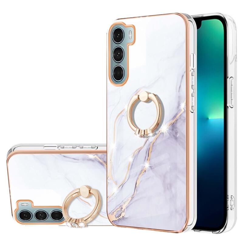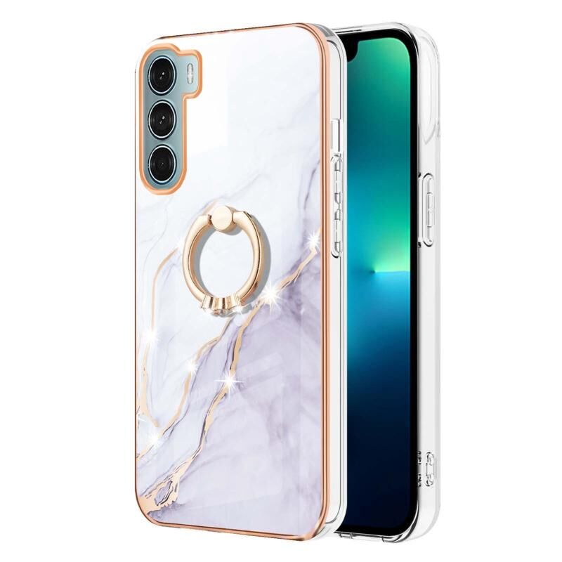 Θήκη κινητού τηλεφώνου για Motorola Moto G200 με επιμετάλλωση, σχέδιο μαρμάρου IMD, αντικραδασμική από TPU με δακτύλιο στήριξης (Μωβ 001)