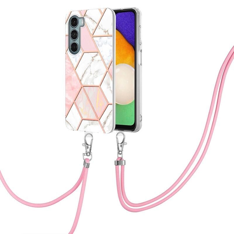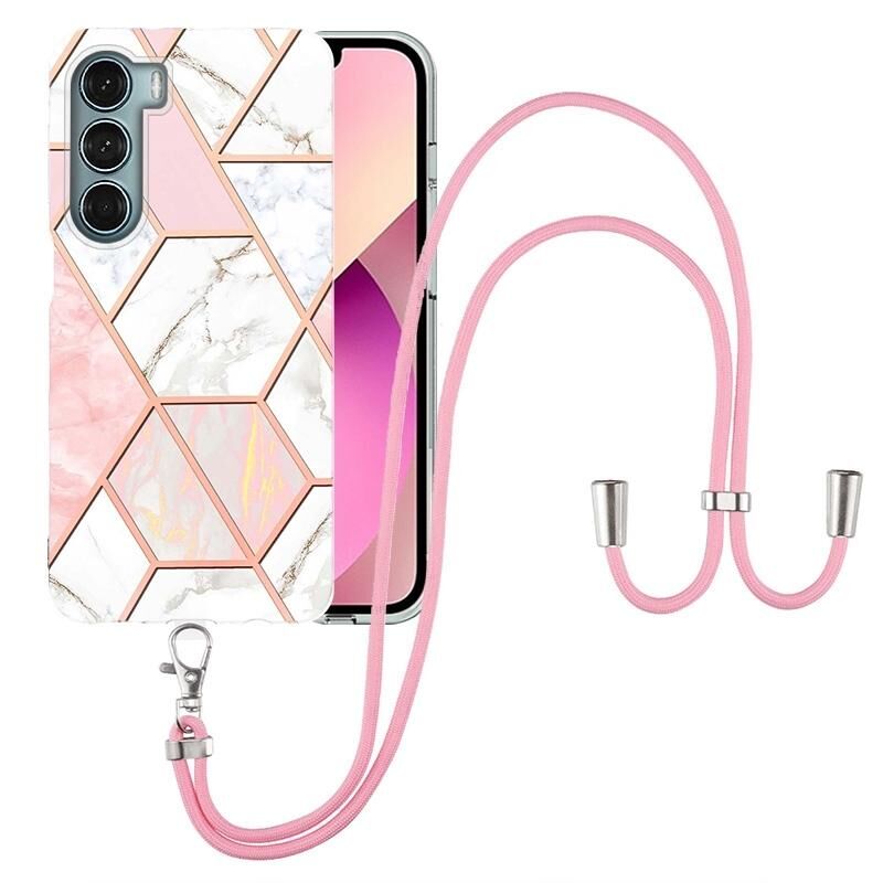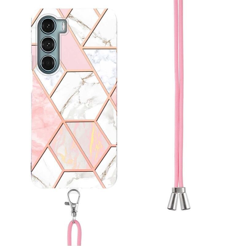 Θήκη τηλεφώνου TPU με γαλβανισμό και μαρμάρινη σύνθεση για Motorola Moto G200 με κορδόνι (Ροζ Λευκό)