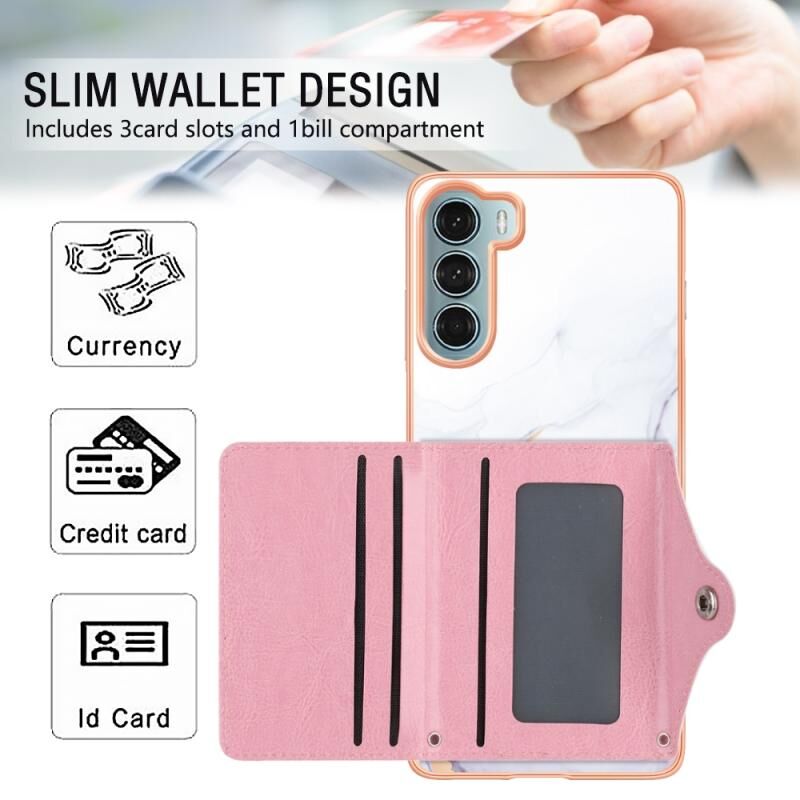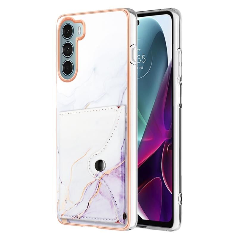 Θήκη κινητού τηλεφώνου με κάρτα για Motorola Moto G200, σχέδιο μαρμάρου IMD (Λευκό Γαλαξιακό Μάρμαρο)