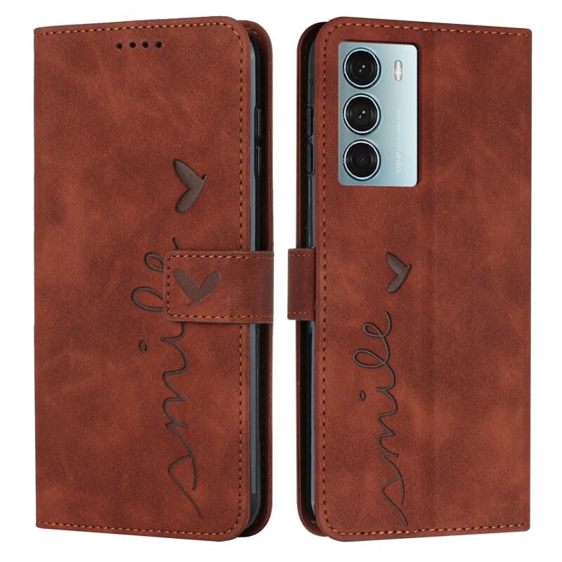 Για Motorola Moto G200 δέρμα αίσθηση καρδιά μοτίβο δερμάτινη θήκη τηλεφώνου (καφέ)