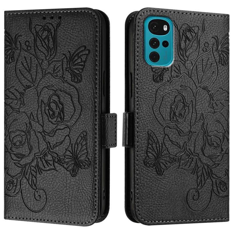 Για Motorola Moto G22 4G / E22s 4G Ανάγλυφο Rose RFID αντικλεπτική δερμάτινη θήκη τηλεφώνου (Μαύρο)