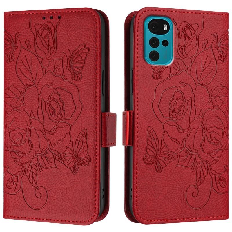 Για Motorola Moto G22 4G / E22s 4G Ανάγλυφο Rose RFID αντικλεπτική δερμάτινη θήκη τηλεφώνου (κόκκινο)