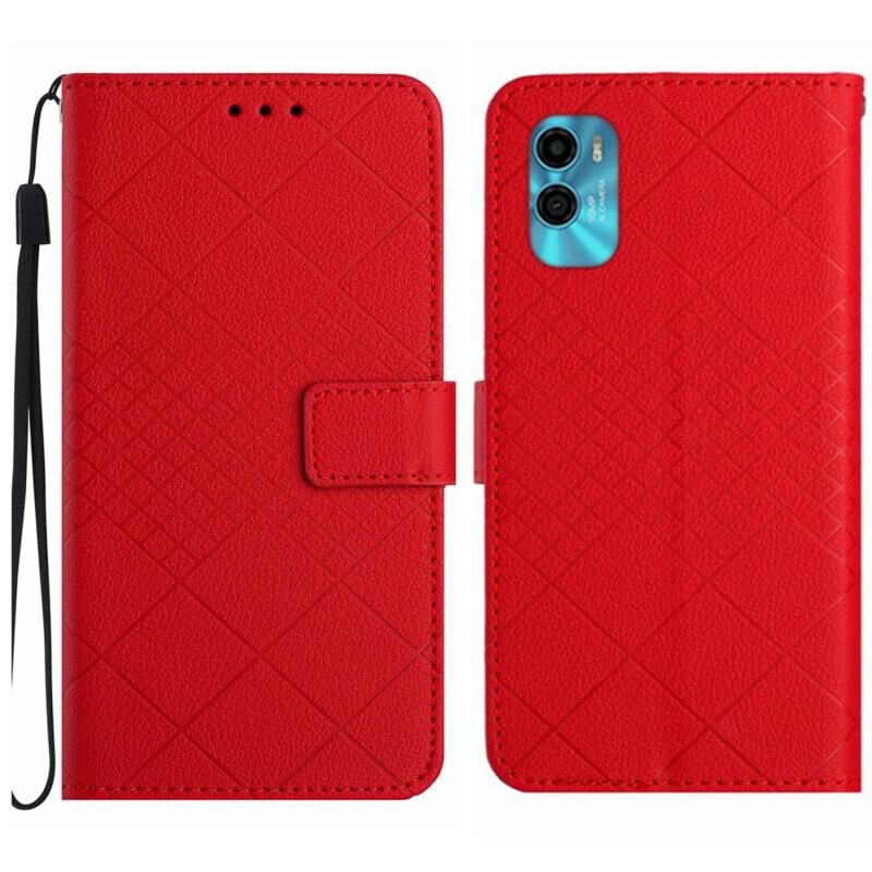 Για Motorola Moto G22 4G / E22S 4G Rhombic Grid Texture Δερμάτινη θήκη τηλεφώνου (κόκκινο)