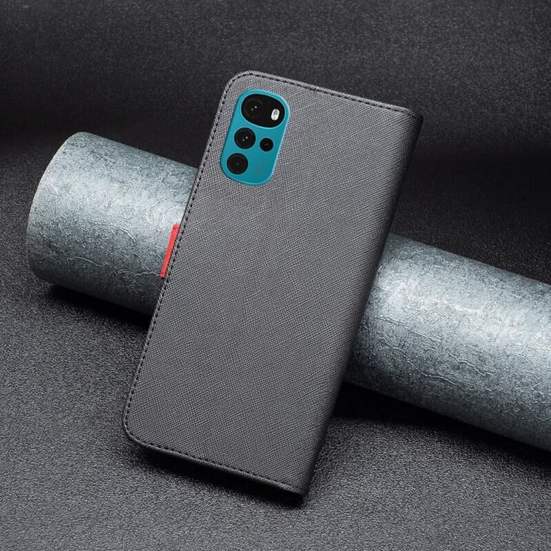 Για Motorola Moto G22 BF13 Χρώμα ταιριάζει με σταυρό υφή δερμάτινη θήκη τηλεφώνου (μαύρο)