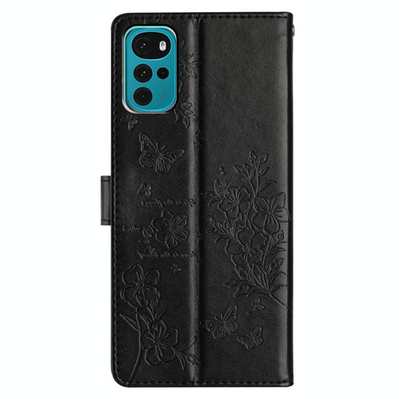 For Motorola Moto G22 Butterflies and Flowers Leather Phone Case(Black)