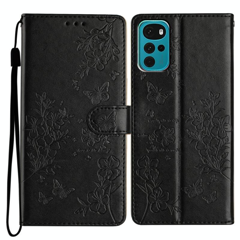 Θήκη τηλεφώνου δερμάτινη για Motorola Moto G22 Πεταλούδες και Λουλούδια (Χρυσό)