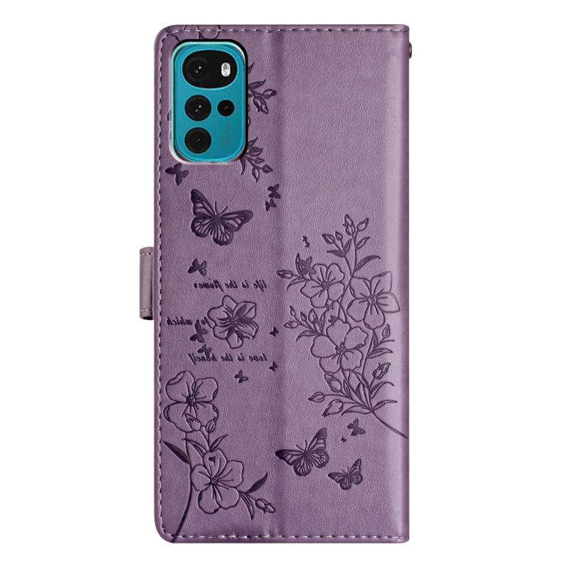 For Motorola Moto G22 Butterflies and Flowers Leather Phone Case(Purple)