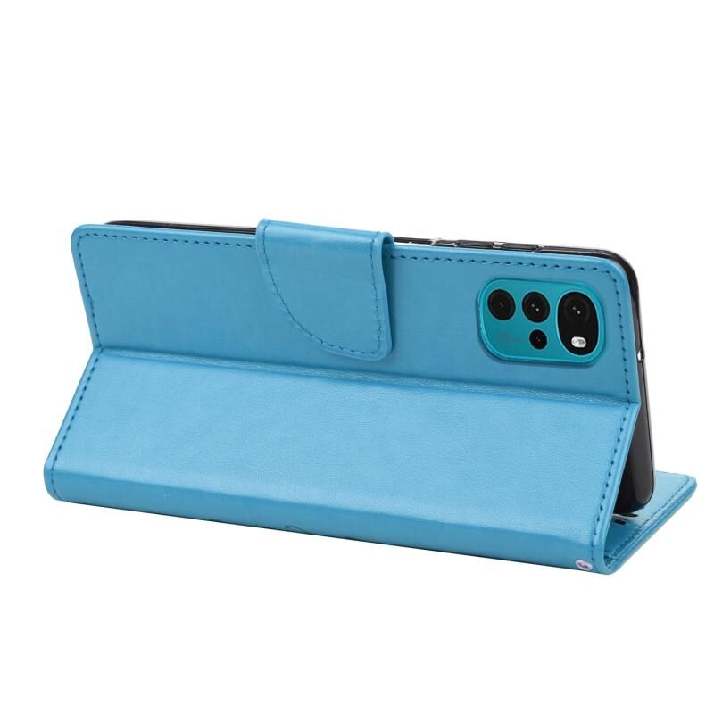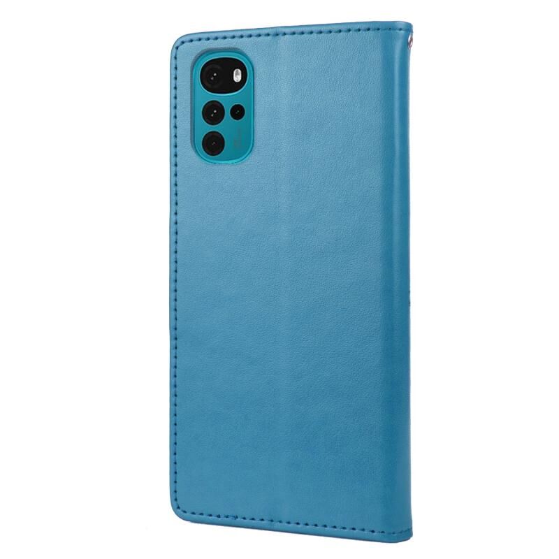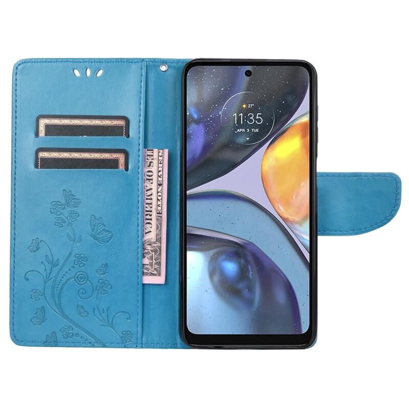 Θήκη κινητού τηλεφώνου από δέρμα με σχέδιο πεταλούδας και λουλουδιών για Motorola Moto G22 (Μπλε)