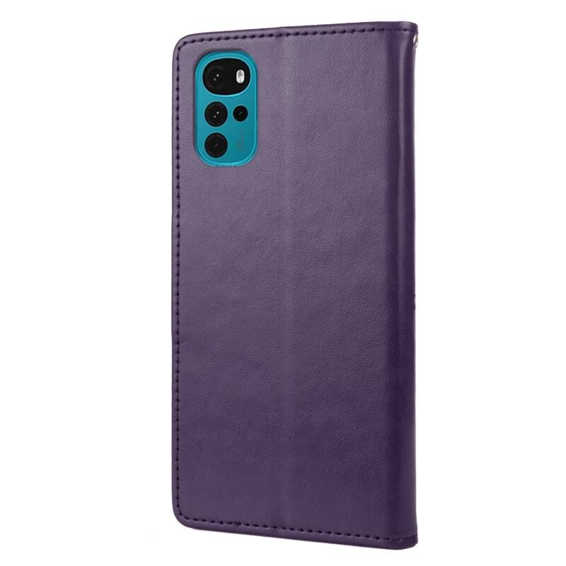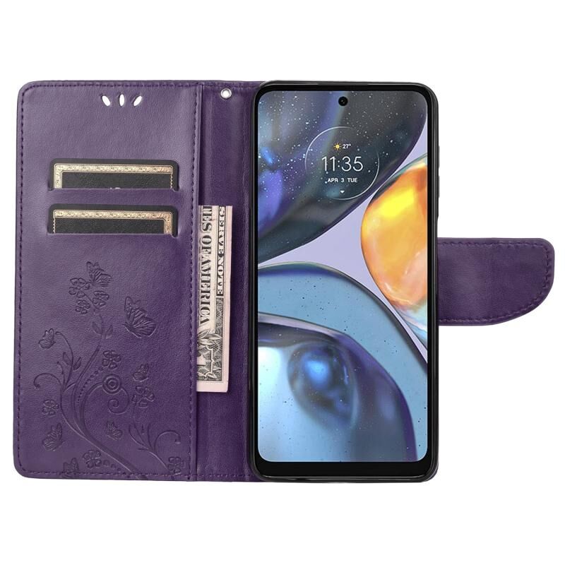 Θήκη κινητού τηλεφώνου από δέρμα με σχέδιο πεταλούδας και λουλουδιών για Motorola Moto G22 (Βαθύ μωβ)
