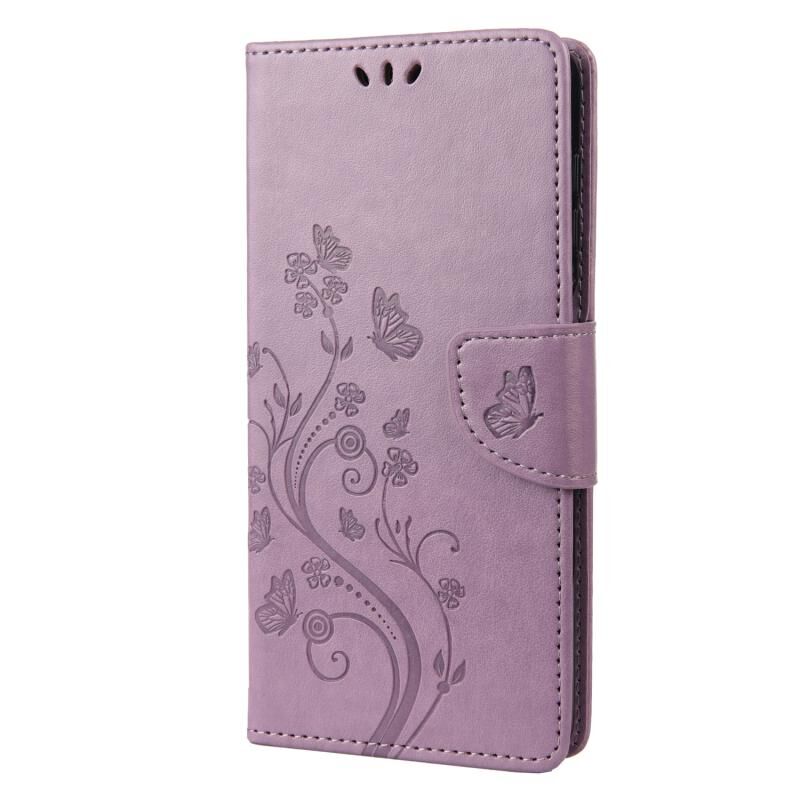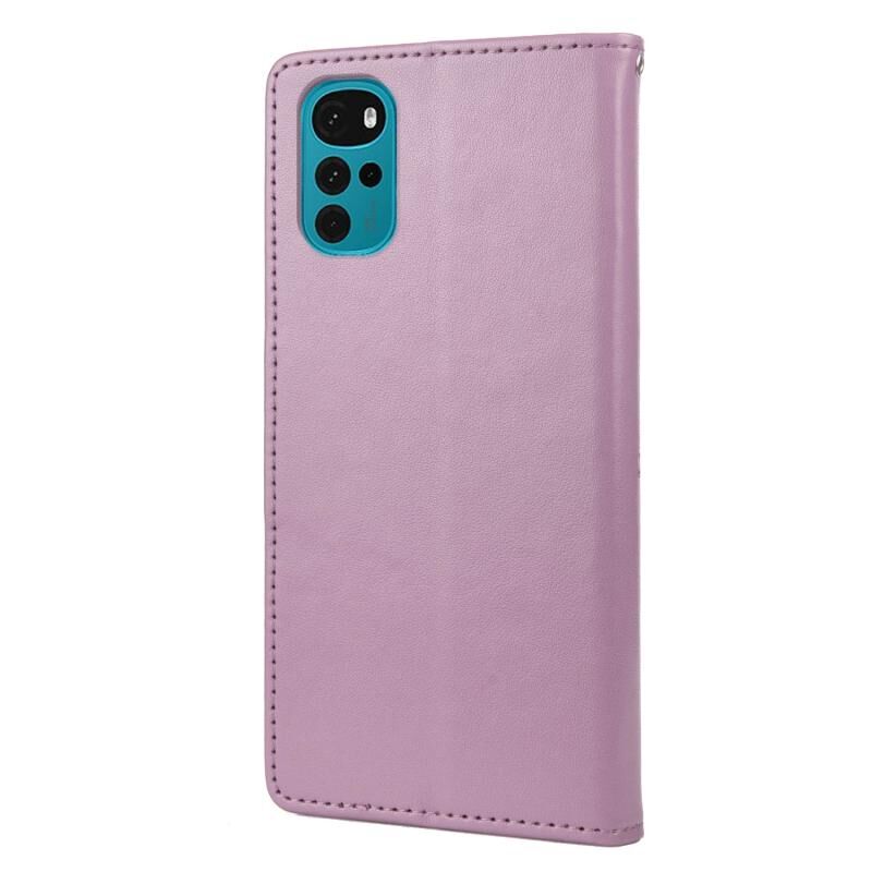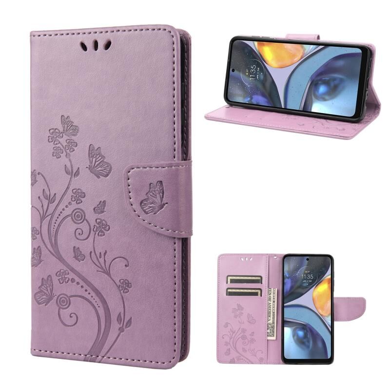 Θήκη κινητού τηλεφώνου από δέρμα με σχέδιο πεταλούδας και λουλουδιών για Motorola Moto G22 (ανοιχτό μωβ)