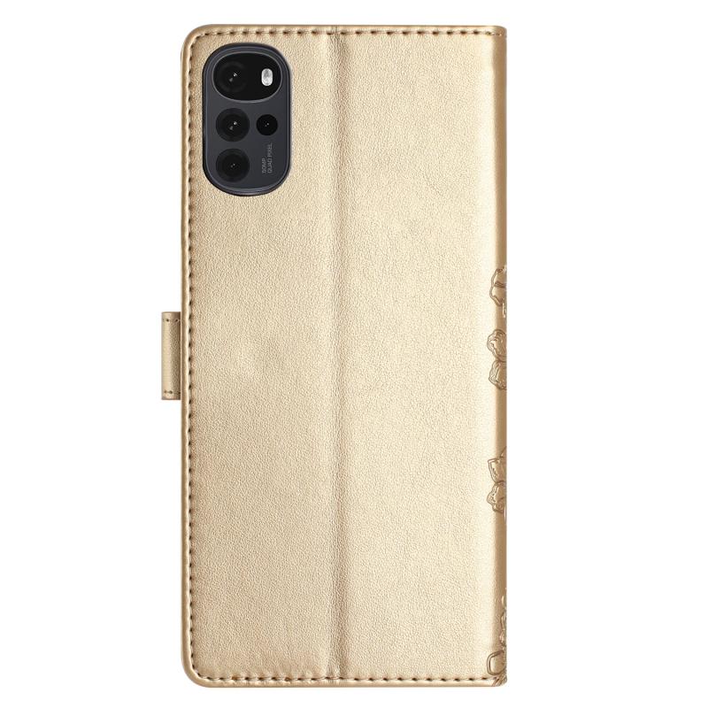 For Motorola Moto G22 Cherry Blossom Butterfly Skin Feel Embossed PU Phone Case(Gold)