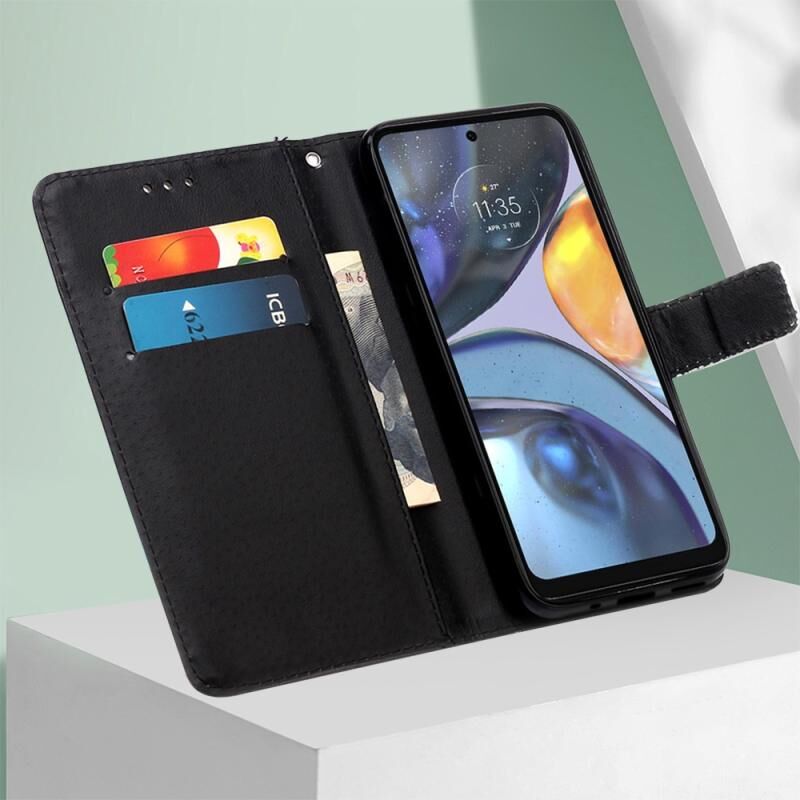 Θήκη τηλεφώνου από δέρμα με απλή ύφανση και πολύχρωμο σχέδιο για Motorola Moto G22 (ρόδινο)