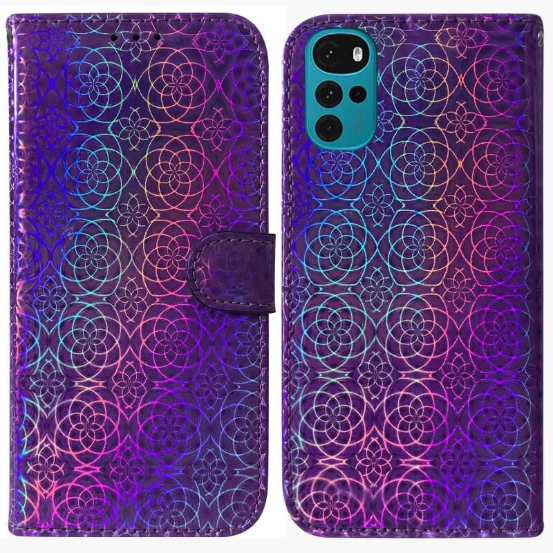 Για Motorola Moto G22 Πολύχρωμο μαγνητική πόρπη δερμάτινη θήκη τηλεφώνου (μωβ)