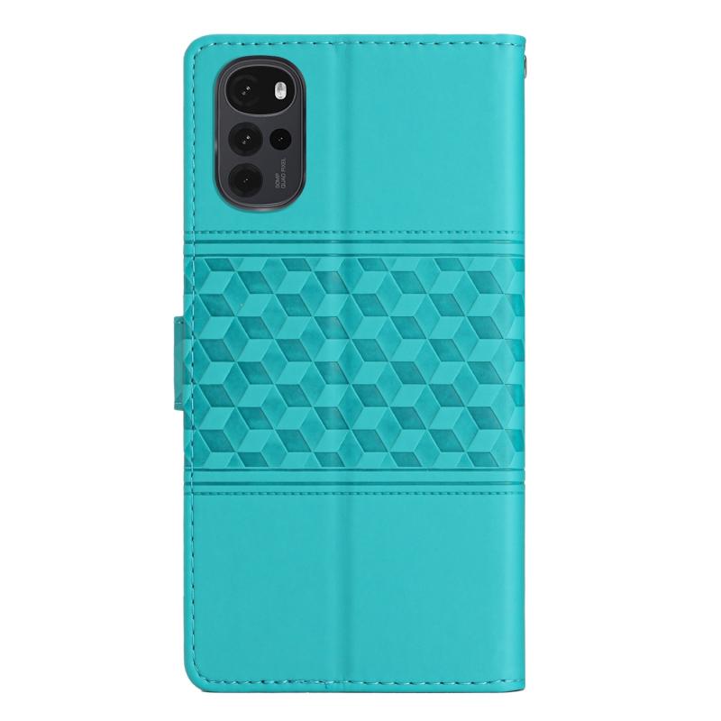 Θήκη κινητού τηλεφώνου δερμάτινη με ανάγλυφο σχέδιο για Motorola Moto G22 με κορδόνι (Μαύρο)