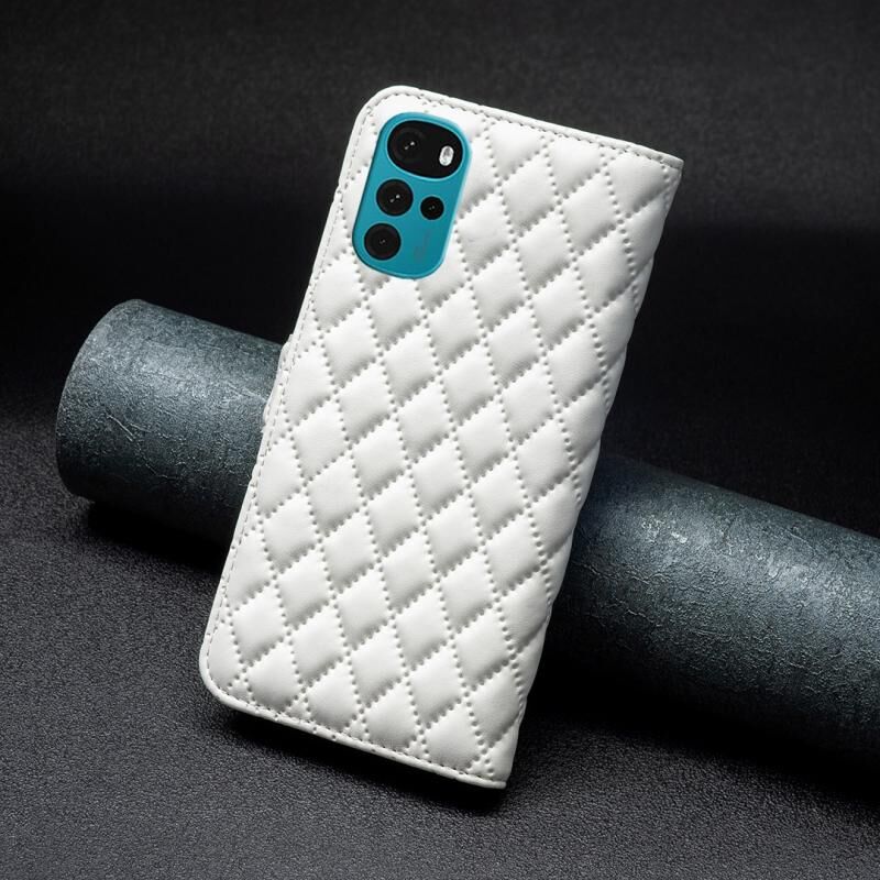 Για Motorola Moto G22 Diamond Lattice πορτοφόλι δέρμα Flip υπόθεση τηλεφώνου (Λευκό)