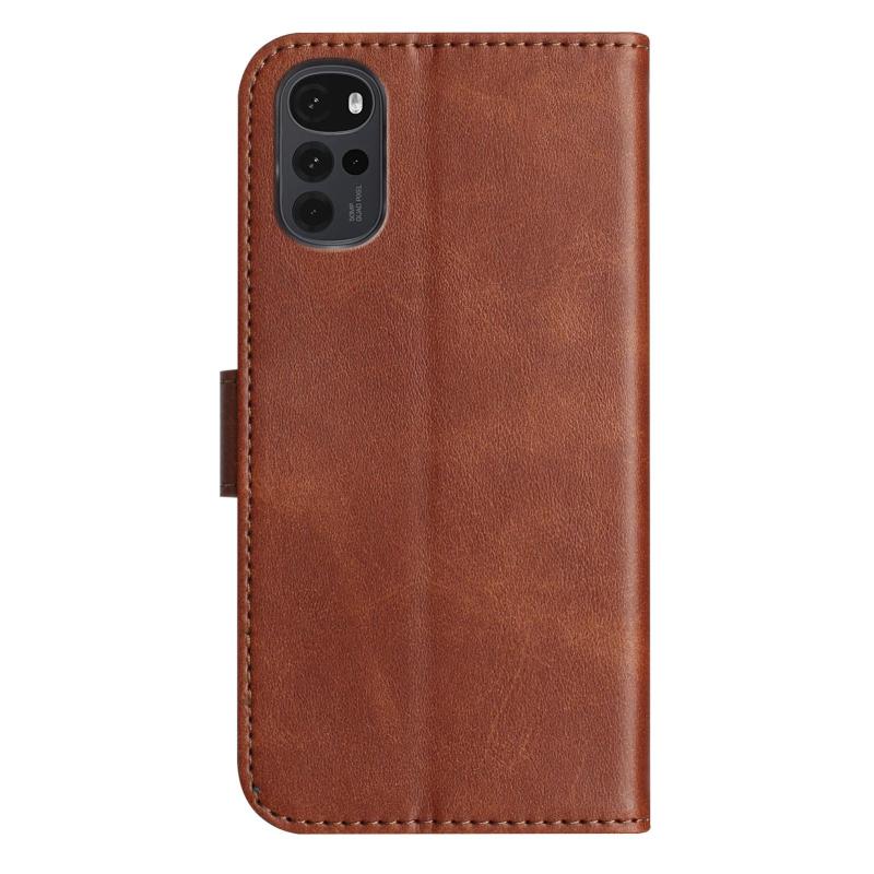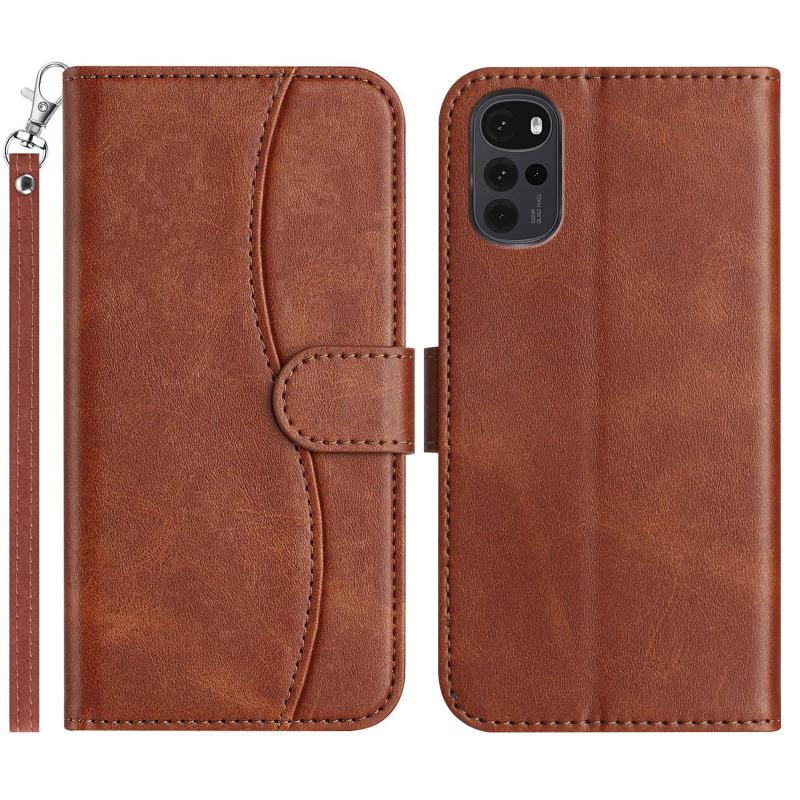 For Motorola Moto G22 Dual-Folded S-shape Leather Phone Case(Coffee)