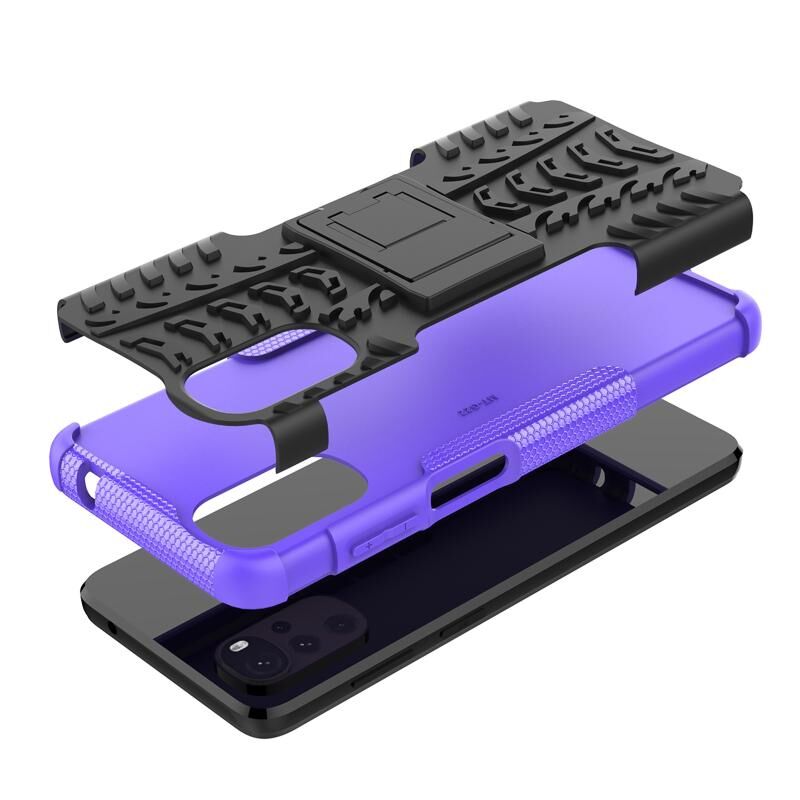 Για Motorola Moto G22/E32 Tire υφή TPU + PC τηλέφωνο υπόθεση με θήκη (μωβ)