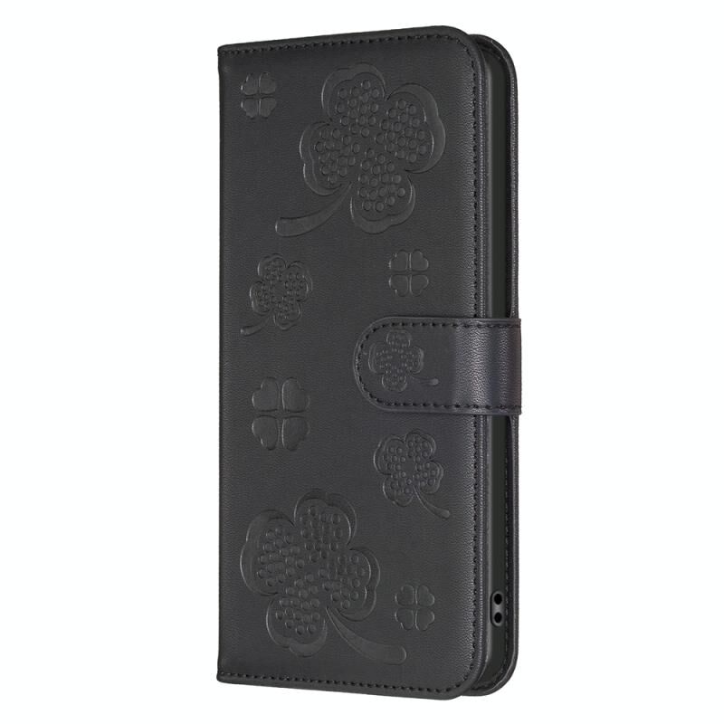 For Motorola Moto G22 Four-leaf Embossed Leather Phone Case(Black)