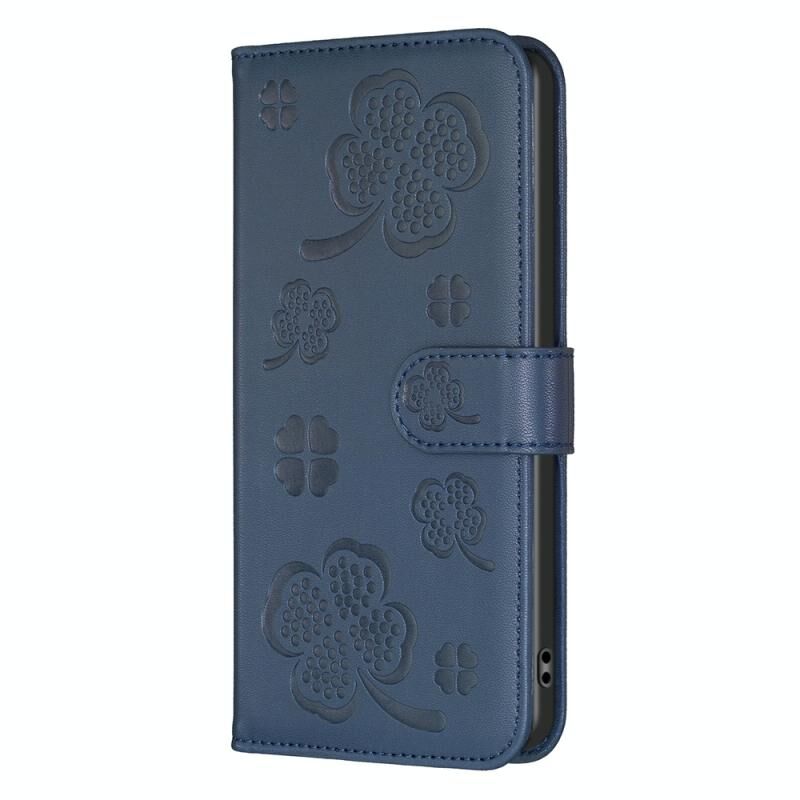 For Motorola Moto G22 Four-leaf Embossed Leather Phone Case(Blue)
