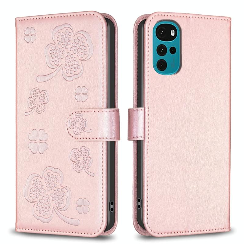 For Motorola Moto G22 Four-leaf Embossed Leather Phone Case(Pink)