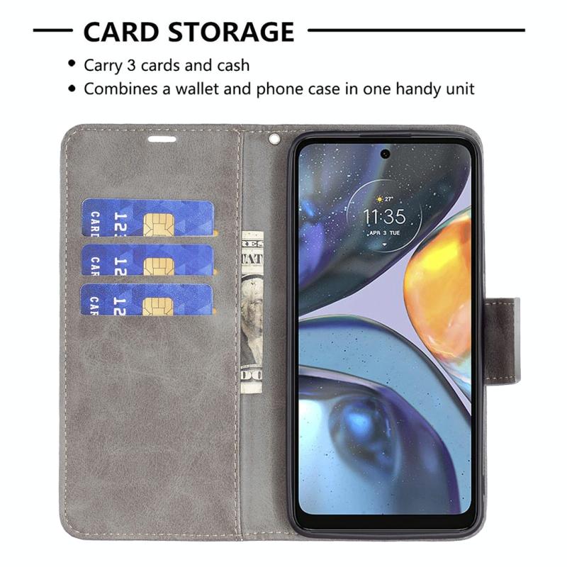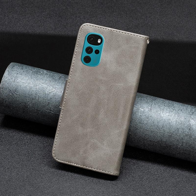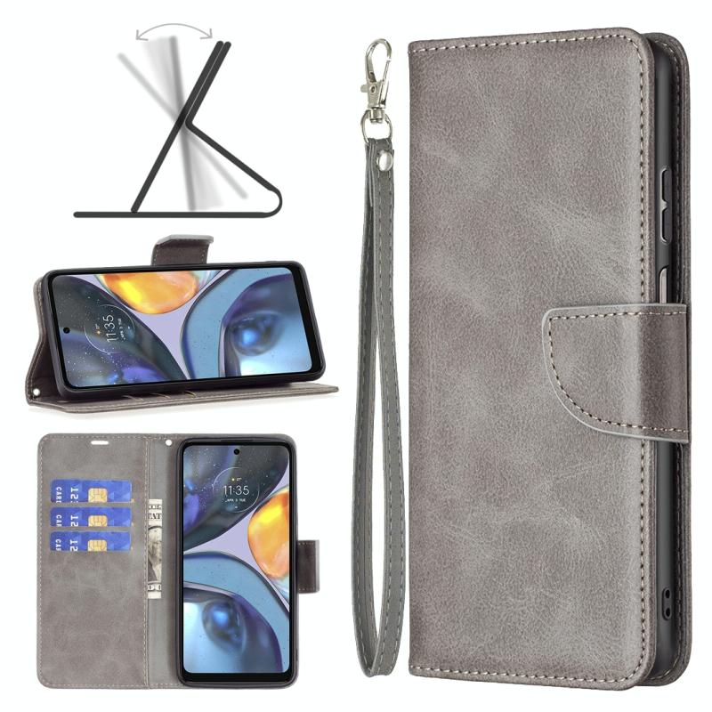 Θήκη τηλεφώνου από γνήσιο δέρμα με καθαρό χρώμα και υφή δέρματος αρνιού για Motorola Moto G22 (Γκρι)