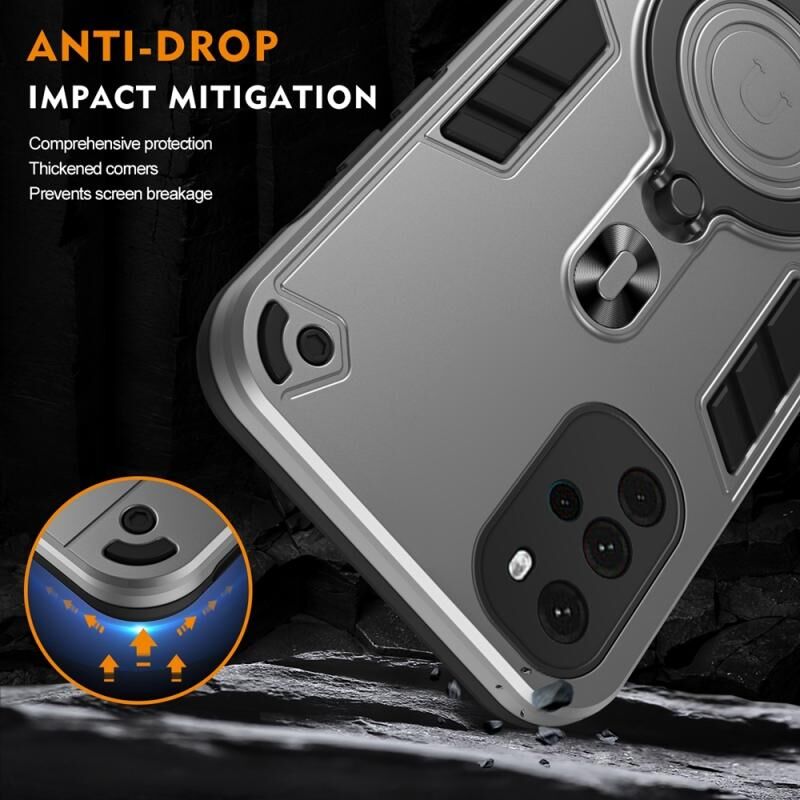 Για Motorola Moto G22 Μεταλλικό δαχτυλίδι 360 μοιρών περιστρεφόμενη θήκη τηλεφώνου PC Hybrid TPU (ασημί γκρι)