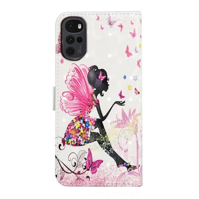 Θήκη τηλεφώνου δερμάτινη με ανάγλυφο σχέδιο 3D για Motorola Moto G22 (Λουλούδι Νεράιδα)