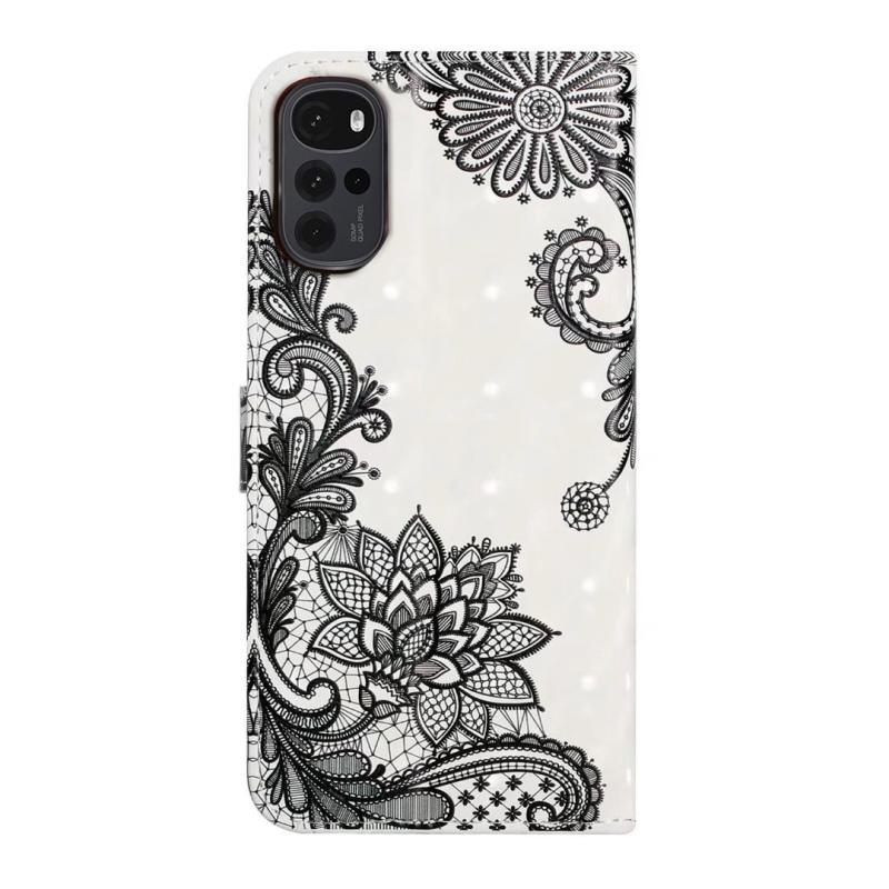 For Motorola Moto G22 Oil Embossed 3D Drawing Leather Phone Case(Lace Flower)