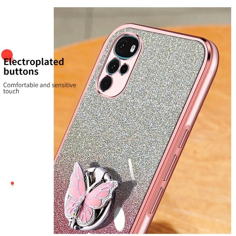Για Motorola Moto G22 Επιμεταλλωμένο διαβάθμιση Glitter πεταλούδα κάτοχος TPU τηλέφωνο υπόθεση (Sierra Blue)